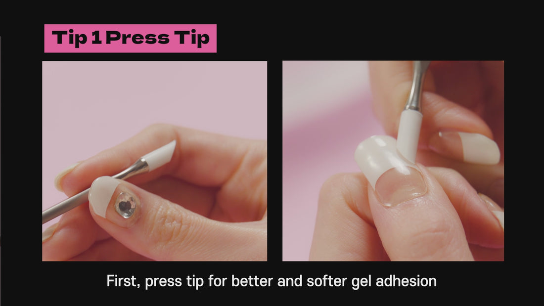 Rub the press tip around nail gems to help them adhere better to the strip