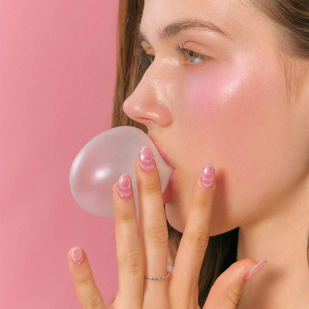 Soft pink sweetness spreads across the nails like strawberry-flavored chocolate, while delicate white marble swirl patterns visually echo love gently melting and flowing. Tiny silver star accents and subtle glitter scatter like shimmering ribbons inside a gift box, adding cute and romantic highlights. The translucent magnetic shimmer shifts softly with movement, wrapping the nails in a warm, dreamy Valentine mood.